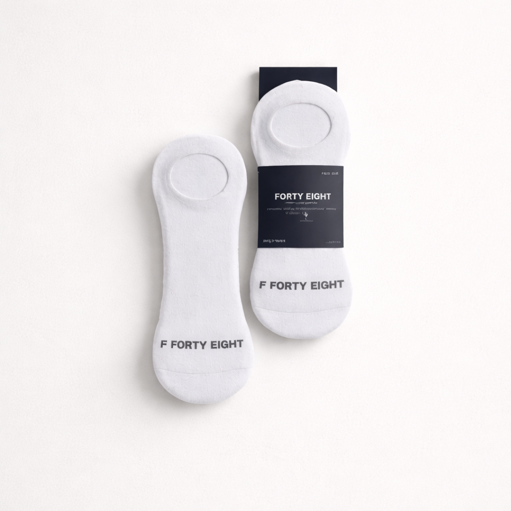 Complete the look with the structured FORTY EIGHT cap and essential socks — designed to unify the silhouette with understated authority.